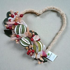 Le coeur Mélina est composé de fruits et fleurs séchées, il mesure environ 23cm par 20cm.