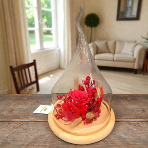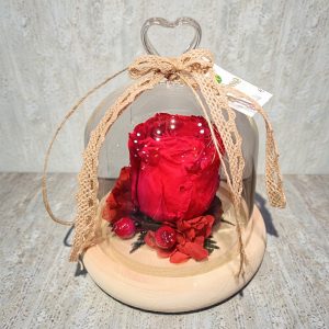 Avec cette jolie rose rouge éternelle , déclarez votre flamme ! elle est présenté sous verre pour préserver sa fraicheur.