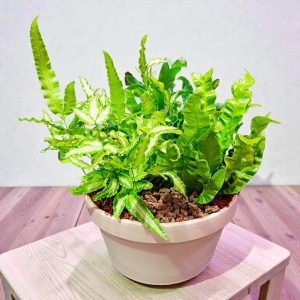 3 magnifiques fougères rempotées ensemble pour un effet boisé.